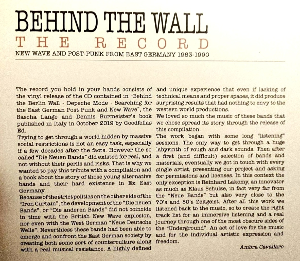 Se desideri scoprire di più in merito alle "Die anderen Bands", il movimento musicale underground della Germania Est che si ispirava alle sottoculture degli anni ottanta nel mondo occidentale, leggi questo long-form che ho scritto per Yanez.